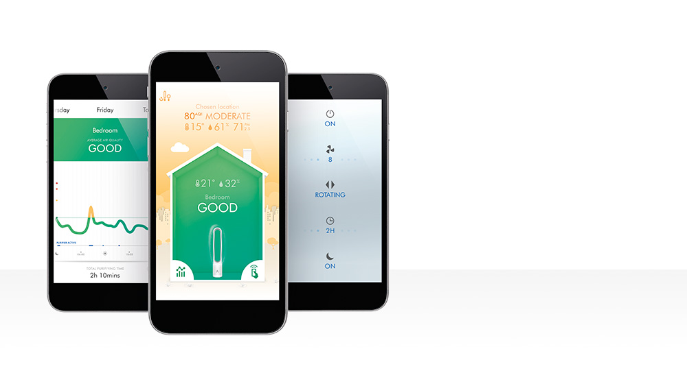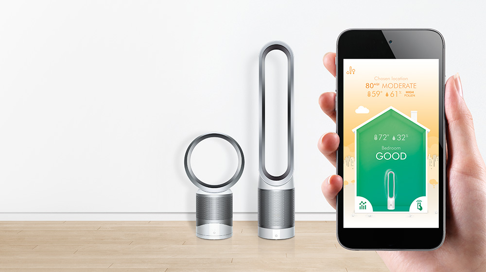 Automatycznie monitoruje i oczyszcza, a następnie wysyła informacje na ten temat do Twojej aplikacji Dyson Link, aby umożliwić zdalne sterowanie