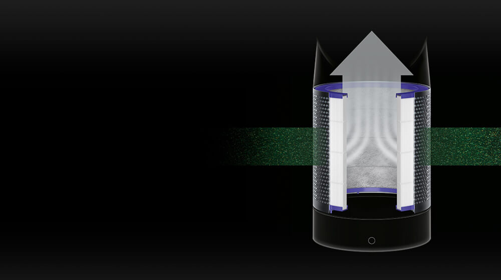 Szklany filtr HEPA 360° firmy Dyson usuwa z domu 99,97% alergenów i zanieczyszczeń o wielkości zaledwie 0,3 mikrona.